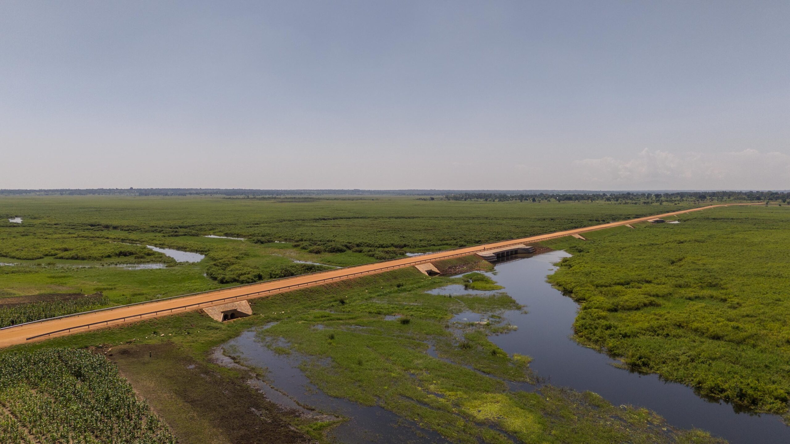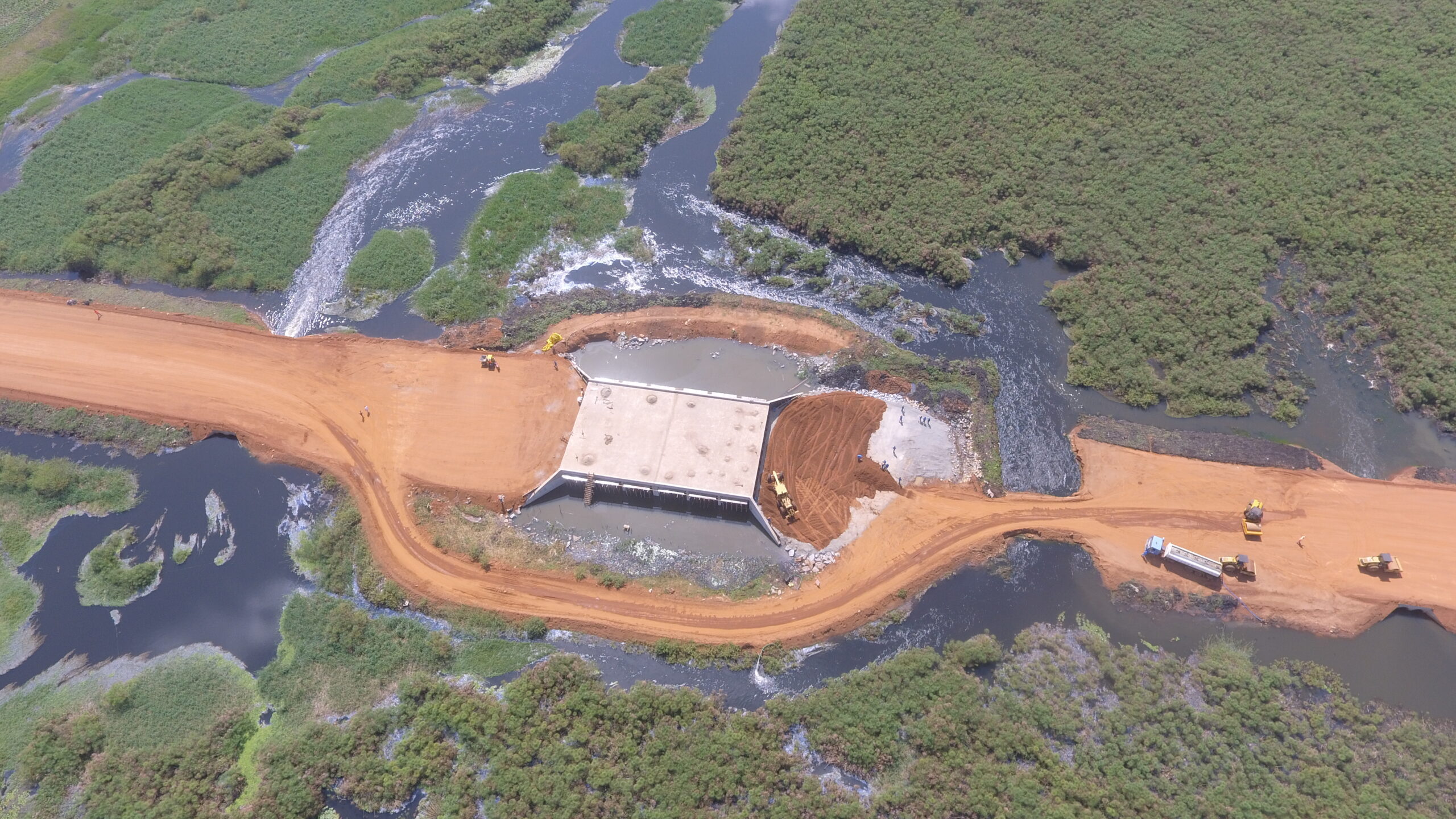 Spanning 2 km through swamp terrain, this project involved extensive clearance in compliance with NEMA guidelines, precision earthworks including cut-and-fill and rock fill, the installation of 12 box culverts, and protective guardrails to enhance year-round accessibility.